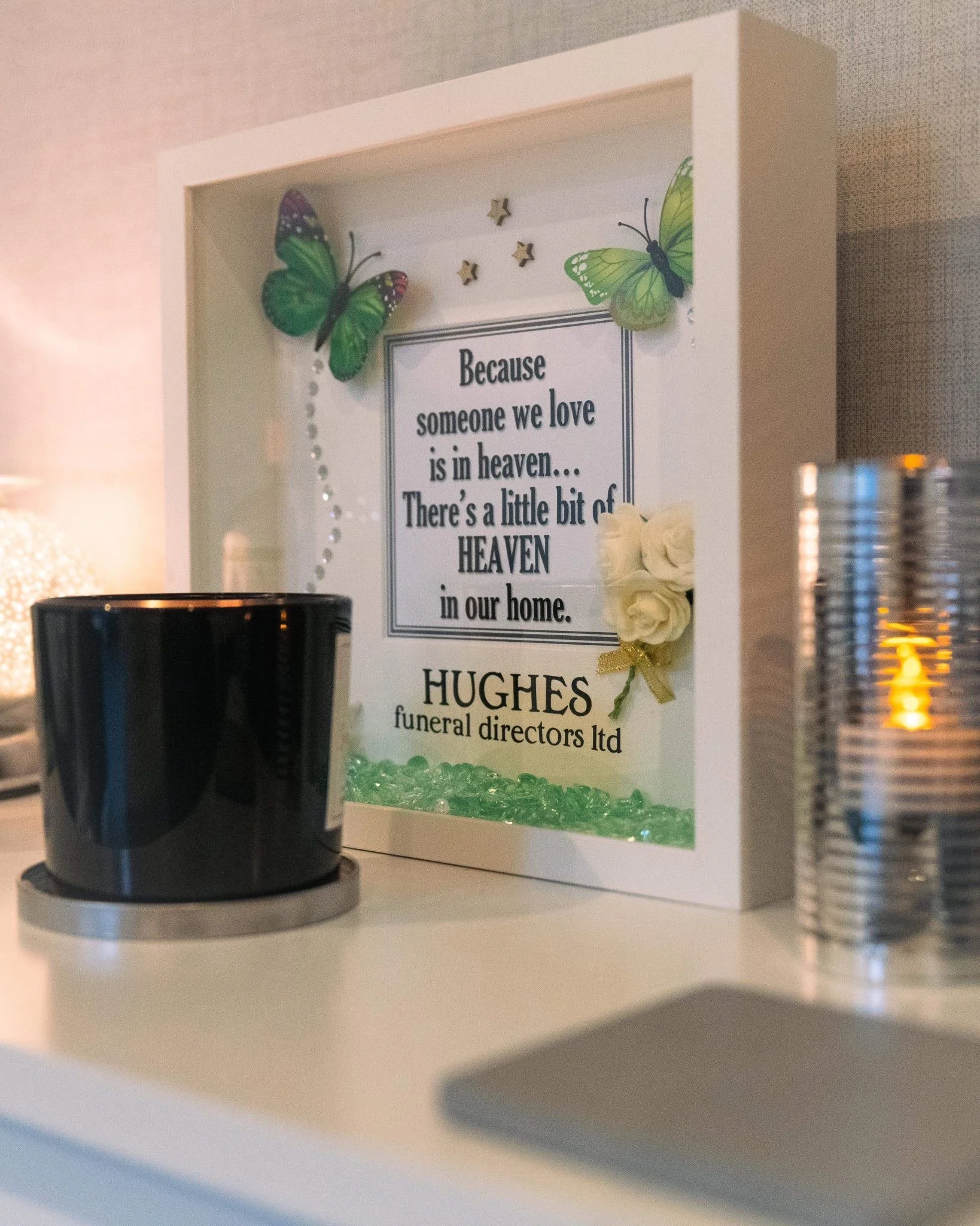 At Hughes Funeral Directors, we offer a range of tributes including coffins, urns, keepsakes, and engraving services, all crafted with genuine care and unmatched quality. We provide thoughtful guidance to help you select the perfect tribute for your loved one without any unnecessary pressure.